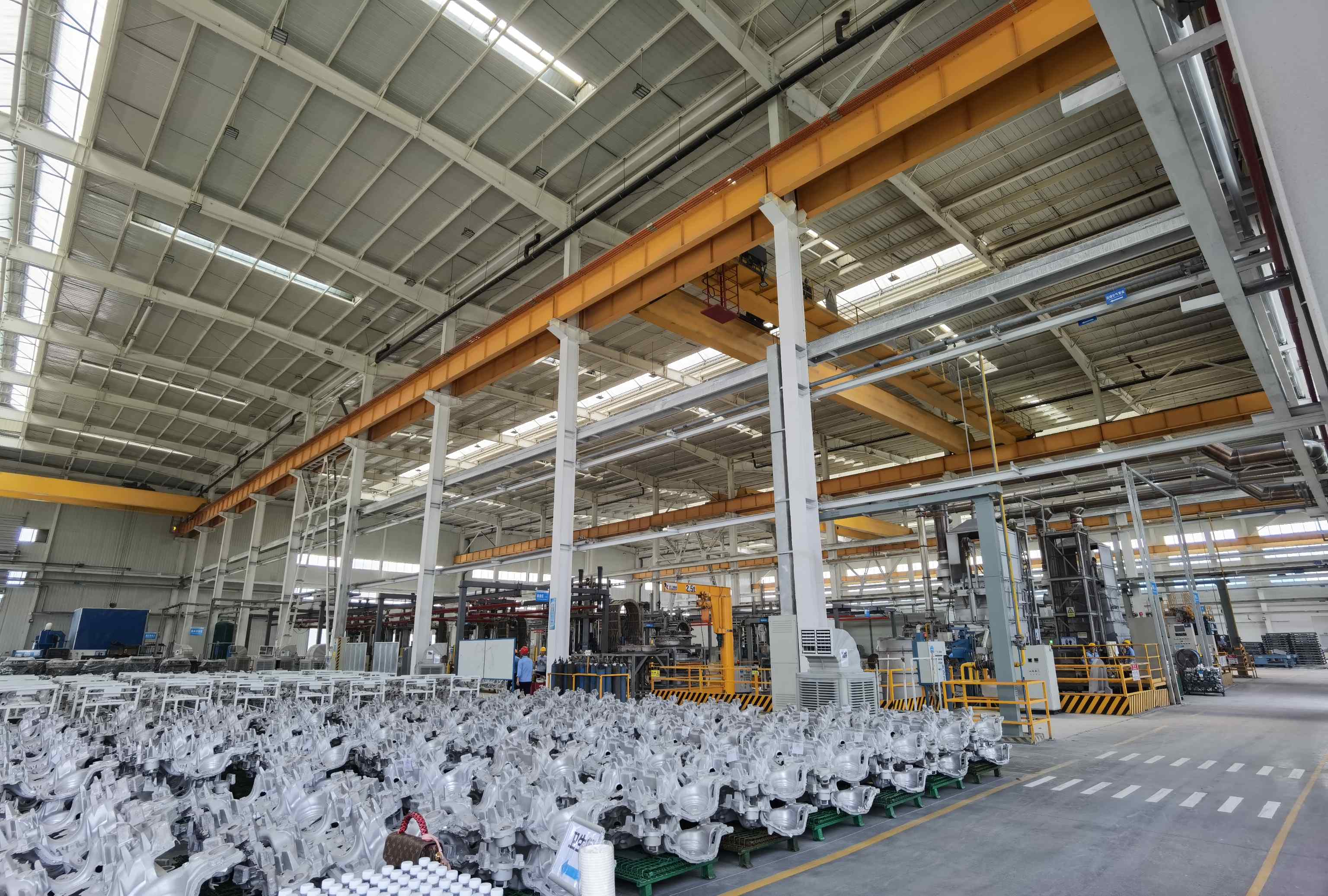 整個生產過程采用信息化追溯管理系統,產品通過二維碼對全過程進行信息跟蹤并記錄。同時還擁有多條各類自動化生產線(如澆注自動化生產線、后處理自動化生產線、總裝自動化生產線等)。其中澆注線具備自動澆注、取件、打碼功能;后處理線可進行自動化冷卻、振砂、切邊切澆冒口等作業;探傷(ADR)具備自動識別鑄件缺陷功能,提升了檢測效率。